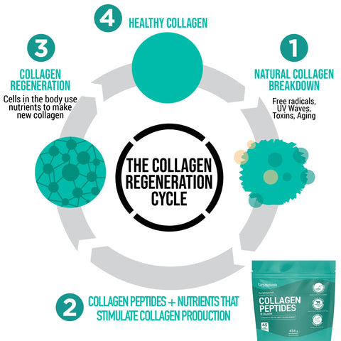 Collagen peptides form the building blocks of your joints & bodily tissues. As you age or accumulate free radicals, these structures break down. Proper collagen supplementation rebuilds the body's collagen. The skin regains its natural elasticity and joints can heal